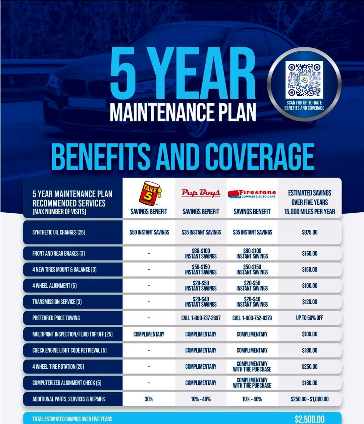 You purchase it with the peace of mind of knowing it has passed a thorough multi-point inspection meets certain age/condition/mileage criteria and is BACKED under our exclusive 'Quality Plus Auto Protection Plan' for 3 MONTHS OR 3000 MILES SHOULD YOU TAKE ADVANTAGE OF PURCHASING THIS AT TIME OF SALE AT OUR DISCOUNTED RATES IN ADDITION TO ADVERTISED PRICE. When you purchase this CPO Warranty from CARMA your 5-Year Maintenance Plan is included! Your plan includes 25 discounted Oil Changes Radiator Service AC Service Engine Diagnostics and hundreds of discounts. Currently these benefits are only available if you buy a new vehicle from a few manufacturers. Now you can feel confident knowing that 5 Years of Maintenance is included on your pre-owned purchase! Any make any model with no year or mileage restrictions! $2500.00 IN VALUE!!