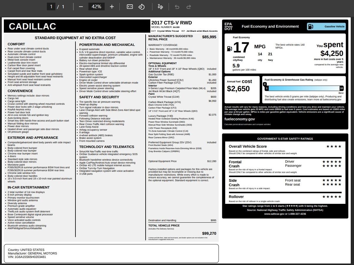 Unleash the Beast: 2017 Cadillac CTS-V Sedan 4D