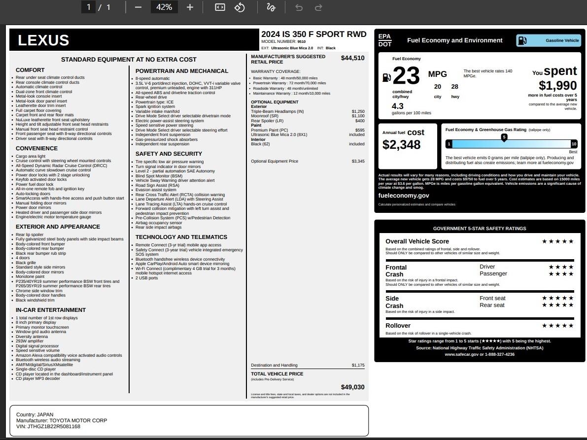 The 2024 Lexus IS 350 F SPORT: Where performance meets precision.
