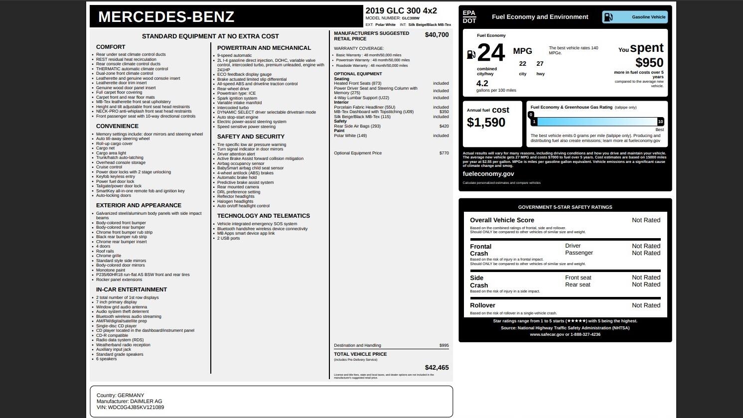 Are you searching for a sophisticated and dependable luxury SUV that offers a pristine history and the renowned quality of a Mercedes-Benz? Feast your eyes on this remarkable 2019 Mercedes-Benz GLC 300! Why This GLC 300 is an