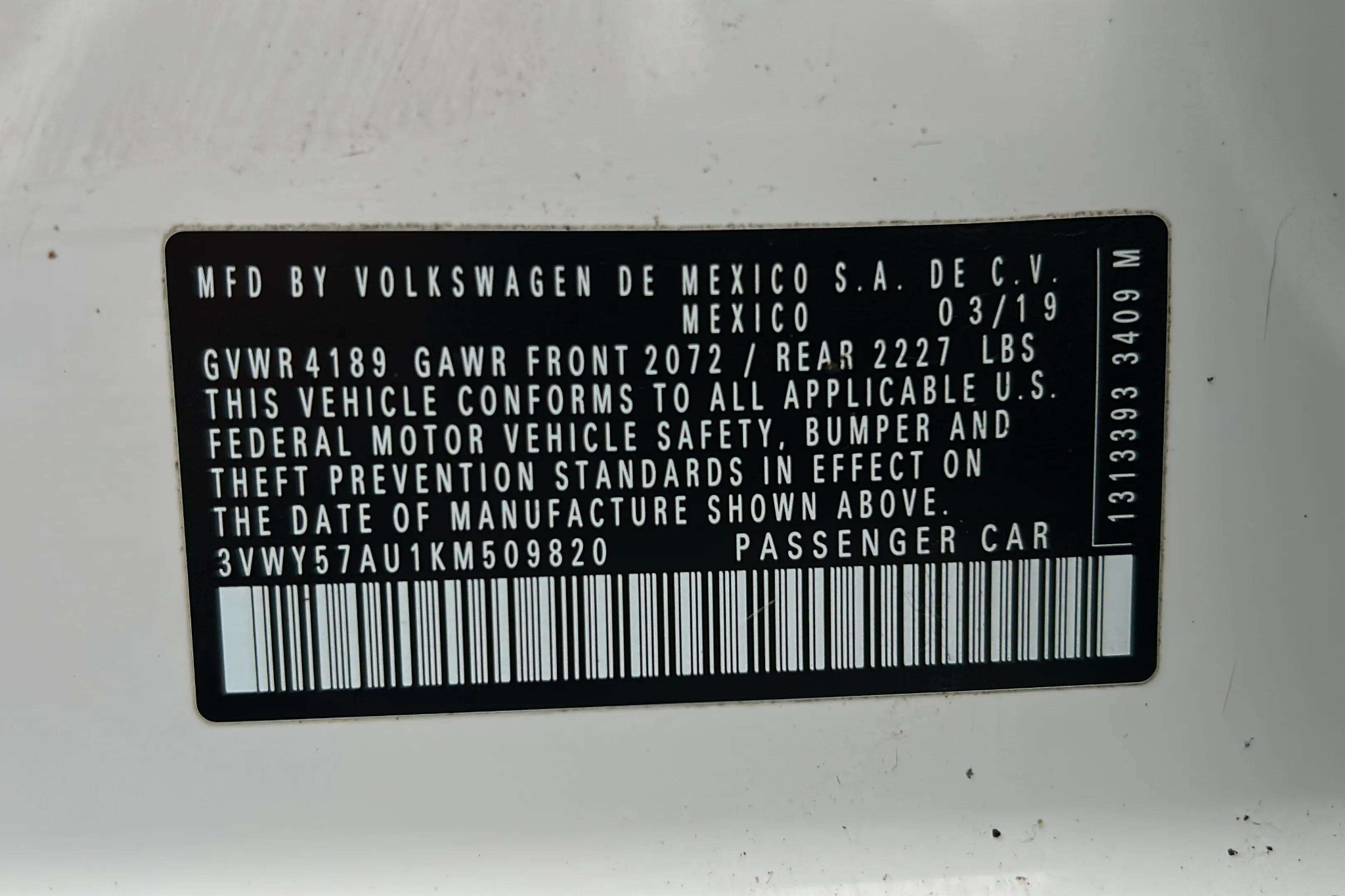 3VWY57AU1KM509820